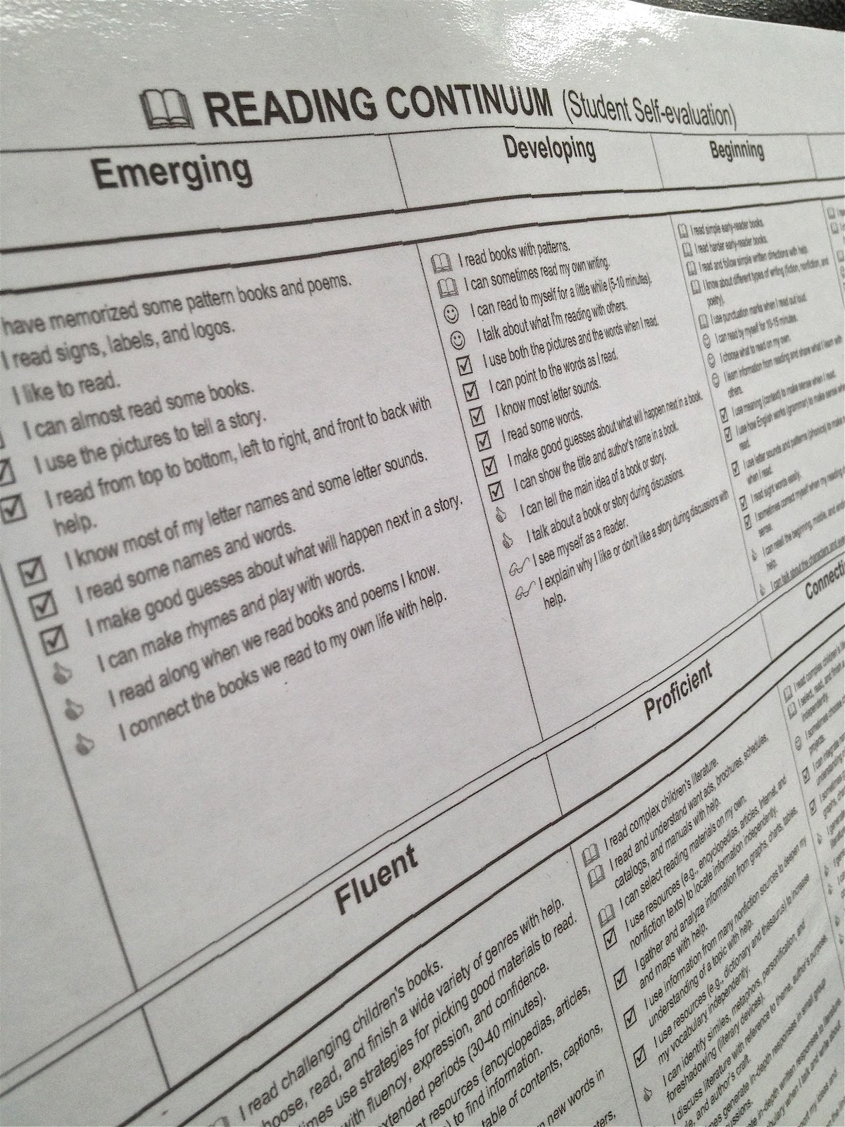 speaking and listening continuum student evaluation and here is one where I changed English to French, it isn't perfect, we'd need one specifically for our students linkning specifically to our provincial learning out comes, it'll do for now Speaking and listening continuum reading "French"