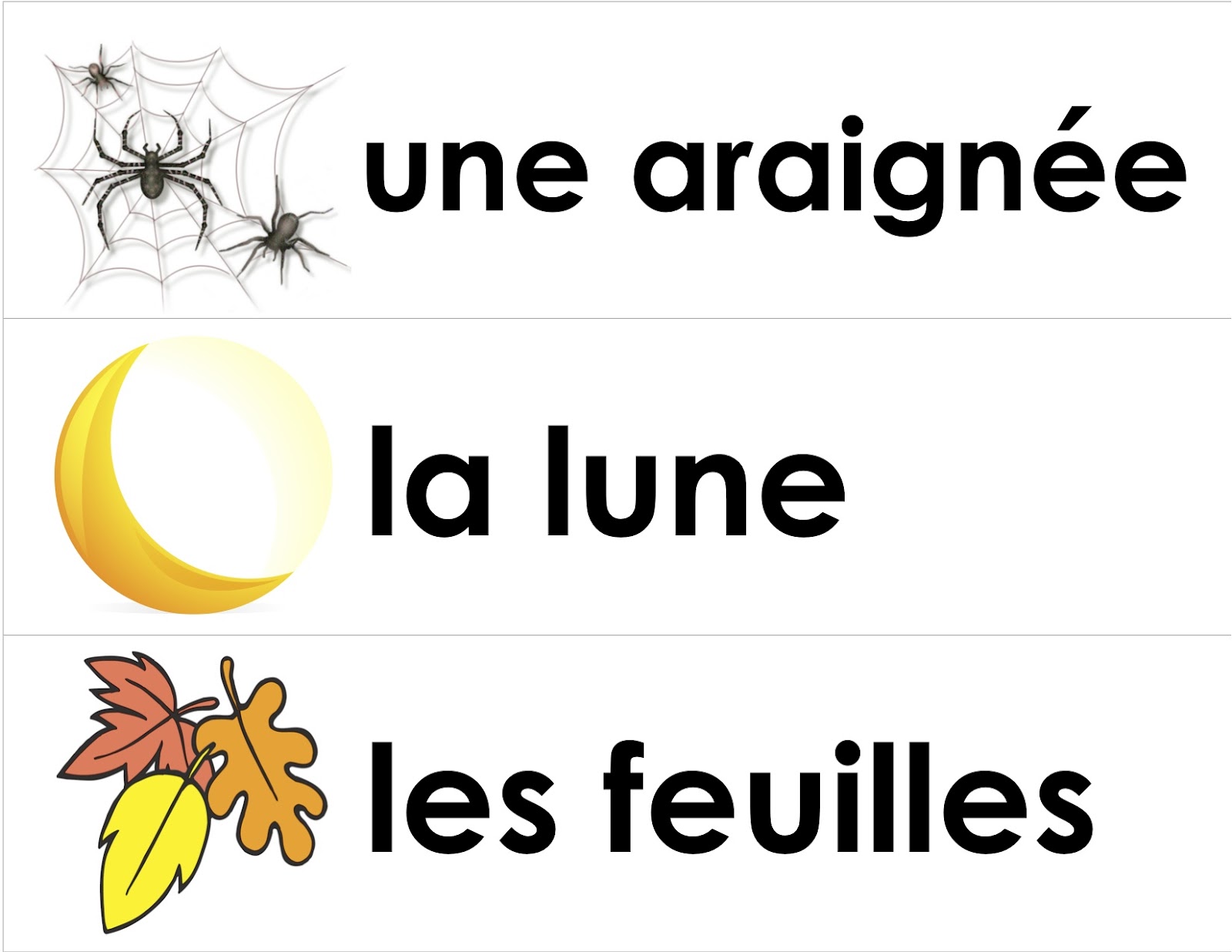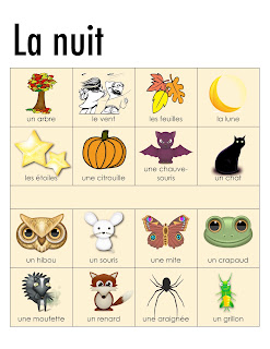 I usually refer to this unit or these materials under the heading "night creatures" and use them in October (some schools, communities may choose not to celebrate Halloween). This unit coincides with math topics around 2D shapes and vocabulary for grades K-2 French Immersion.