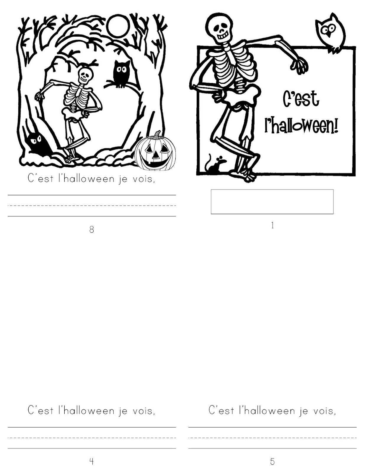 Le feu follet - Carving a pumpkin booklet, reviews the parts of a face, students complete the sentence. Show this example, have students draw and build their own book.