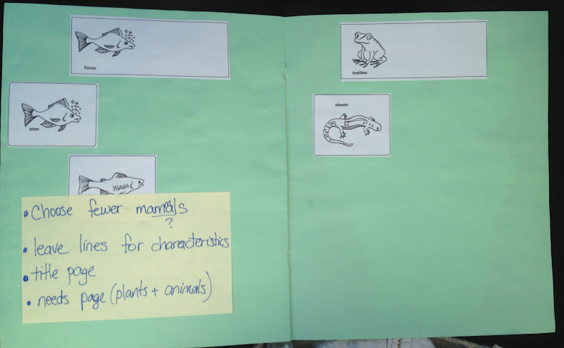Some students wanted to sort their animals as mammal, reptile and so on in a booklet. These photos are my moc-ups. I always try out the project first to see what students might need. Students also added their own drawn animals, animals they found in magazines, pictures their friends had drawn, their pets. I forgot to photograph the student booklets.
